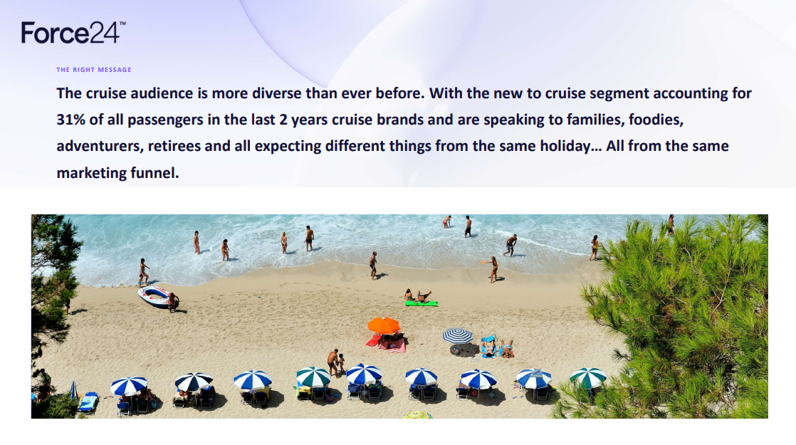 Language matters: Brands like Royal Caribbean are reframing “cruises” as “holidays,” recognising the need to modernise messaging and avoid dated terminology.